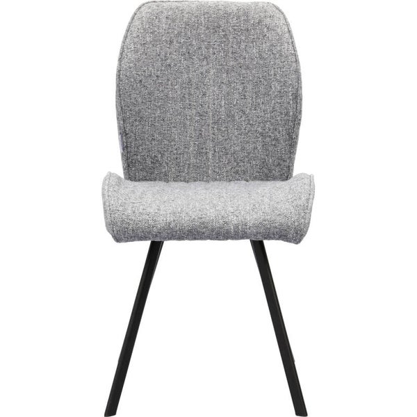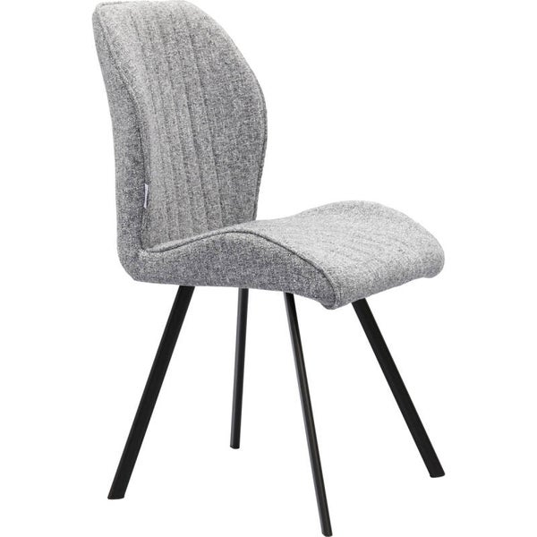 Met eetkamerstoel Dino weet je zeker dat je goed zit, letterlijk en figuurlijk! De zitting van deze moderne stoel is namelijk gevuld met comfortabel polyether, net als de rug. Een fijne stevige zit waar je heel wat uurtjes op kunt tafelen dus! De stoel zit niet alleen lekker, hij heeft ook nog eens een mooi modern design. Stoel Dino is bekleed met een redelijk donkergrijze stof en heeft een onderstel van zwarte poten van metaal. Wat verder goed is om te weten, is dat de stoel een zithoogte heeft van 49 cm en een zitdiepte van 46 cm.