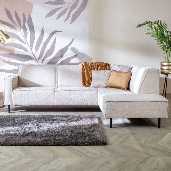 Bank Yaro: een hoekbank in hedendaags design met strakke lijnen, hoge pootjes en een opstaande stiknaad als fraai detail. Yaro is een trendy bank die je snel in huis kunt hebben in de fijne, zachte stof Catch Me. De kleur sandshell past perfect in vele interieurstylen, zoals scandinavisch of industrieel. Deze hoekbank is ultiem om lekker op te relaxen. Deze 2,5-zits + hoekziteiland heeft een zitcomfort op basis van nosagveren en zijn er polyetherschuim en een laag vezels toegevoegd, waardoor je lekker comfortabel zit. De rugvulling bestaat uit comfortschuim voor, de naam zegt het al, een optimaal comfort! Dus, wil je snel een comfortabele trendy bank in je woonkamer, bestel 'm snel online, of kom lang in één van onze winkels om Yaro uit te proberen. Liever een andere kleur of opstelling: bekijk de andere mogelijkheden van Yaro op deze website en stel 'm zelf samen.