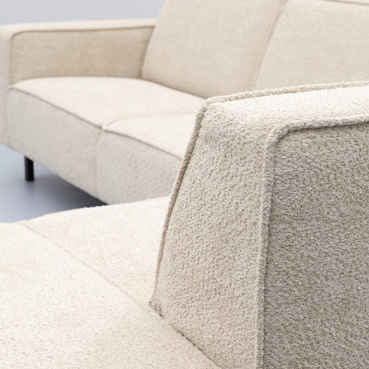 Bank Yaro 2.5 zits links + hoek zit eiland rechts in stof Catch me Sand + vlindernaad