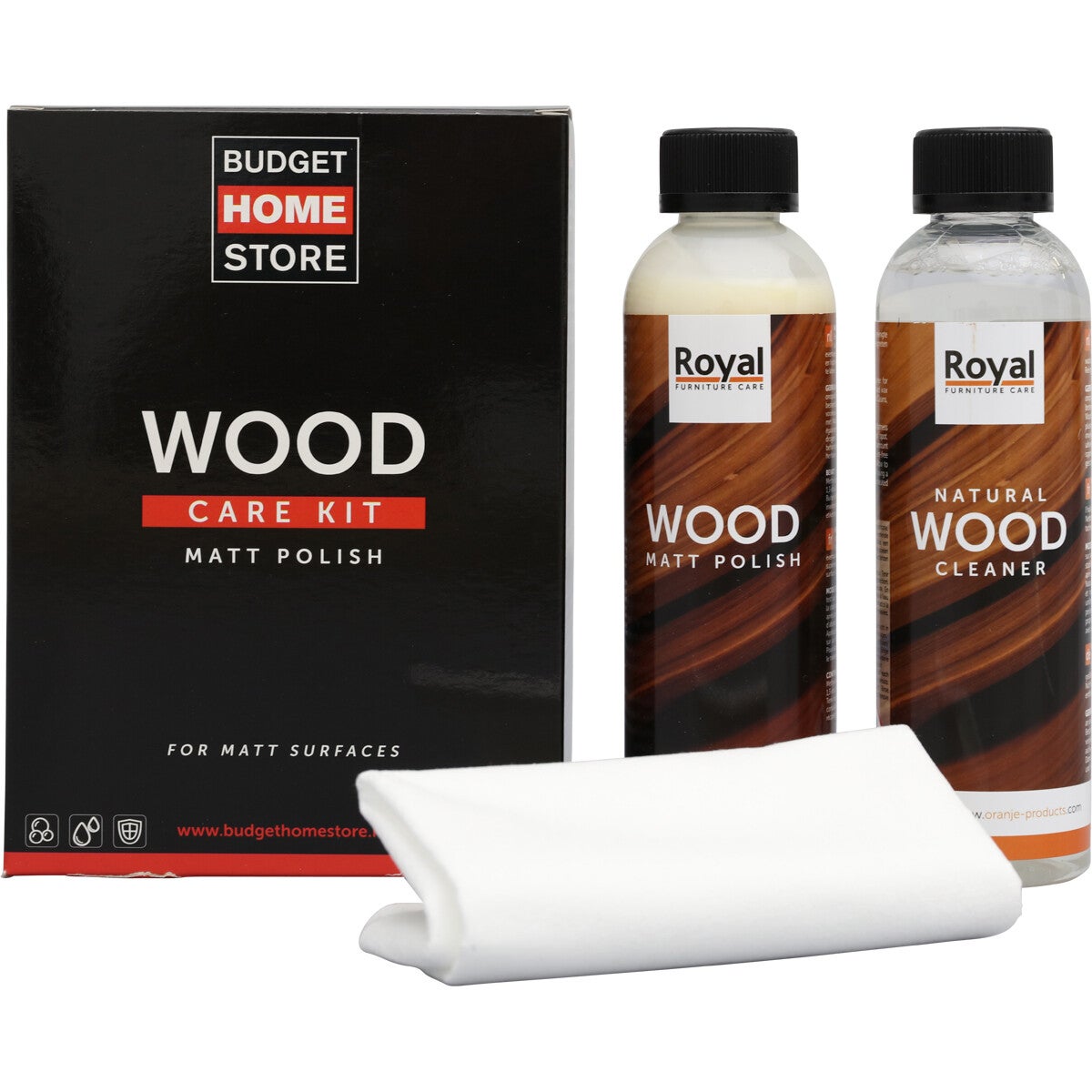 De verzorgingsset Wood Care Kit Matt Polish bevat: