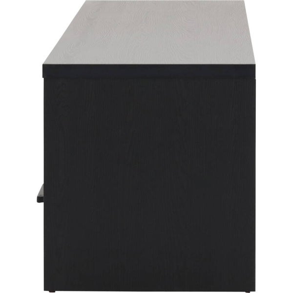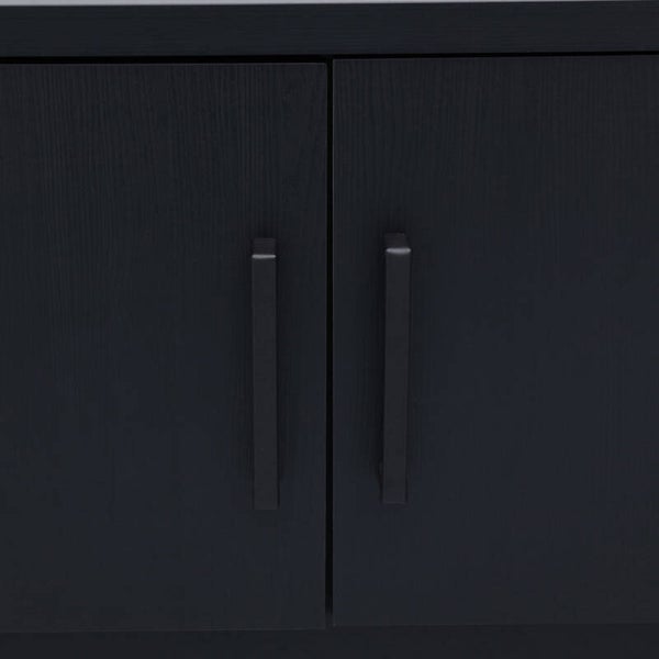 Met tv-meubel Bram van 170x45x50 cm haal je tijdloos design in huis. Dit sfeervolle dressoir, uitgevoerd in modern zwart, verdient altijd een prominente plek in je interieur. Het tv-meubel beschikt over twee deuren die opbergruimte voor diverse spullen bieden en heeft 1 lade en 1 open vak voor tv-apparatuur. Natuurlijk is er bovenop het meubel nog ruimte voor wat leuke woondecoratie. Gemaakt van sterke en onderhoudsvrije melamine, is dit meubel in hoge mate krasbestendig en van hoogwaardige kwaliteit.