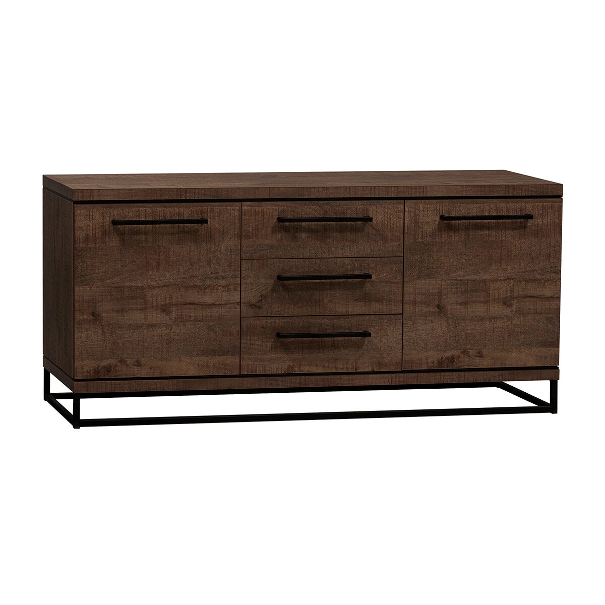 Dressoir London met 2 deuren en 3 lades heeft een strakke robuuste uitstraling die mooi aansluit in een modern industrieel interieur. Het dressoir heeft veel opbergmogelijkheden en bovenop het dressoir genoeg plek voor al jouw mooie accessoires. De deuren en lades zijn voorzien van een softclosesysteem waardoor deze altijd rustig sluiten. De strakke zwarte designpoot en handgrepen geven dressoir London een stoere en stijlvolle uitstraling. De kast heeft een melamine afwerking in de kleur dark mango. Melamine is een sterk materiaal dat oogt als massief hout. Het is in hoge mate krasbestendig en onderhoudsvriendelijk: je hoeft hem enkel schoon te maken met een vochtige doek. Het dressoir London is daarmee een ideale eyecatcher in jouw interieur als buffetkast of voorraadkast.