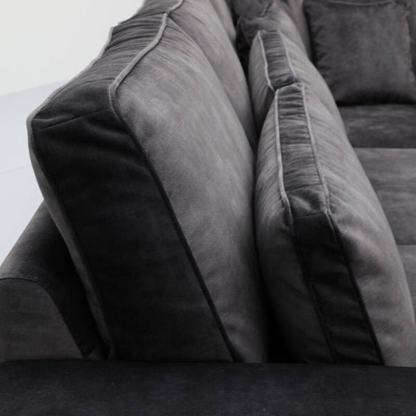 - Uitvoering getoond model 2,5 zits + hoek-zit-eiland in "onze selectiestof" Adore Antraciet