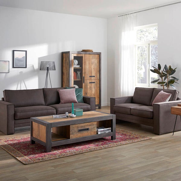 Salontafel Coruna: industriële salontafel met opbergruimte bij Budget Home Store. Coruna is een houten salontafel met een metal-look frame dat de tafel als het ware omlijst. De materialen zijn mooi afgewerkt, waardoor de salontafel op een smaakvolle manier stoer oogt. Het design maakt deze salontafel bovendien eigentijds. Het meubel zal dan ook mooi staan in veel modern ingerichte woonkamers. Een goede keuze, of je nu een industrieel interieur hebt of graag woonstijlen naar eigen smaak mixt. Salontafel Coruna is met z'n 135 x 45 x 67 cm (b x h x d) een behoorlijk grote salontafel. Een rechthoekige salontafel met opbergruimte dankzij 2 handige open vakken en een la. Verder is het goed om te weten dat de salontafel, net als de kasten in de meubelserie Coruna bij Budget Home Store, is afgewerkt met Melamine in kleur Oriënt. Melamine is een sterke kunststoflaag die wordt aangebracht over mdf-hout. Het ziet eruit en voelt als massief hout. Budget Home Store adviseert dit materiaal vaak en van harte, omdat het jou een paar interessante pluspunten biedt. Het materiaal is namelijk krasvaster dan hout en zal niet gaan werken. Bovendien heb je het voordeel dat je meubels van Melamine ontzettend makkelijk schoonmaakt: neem regelmatig af met een schone, vochtige doek en maak daarna droog. Zo simpel houd jij jouw meubel lang mooi. Verder hebben we nog deze bonus voor je: alle Coruna-meubels zijn standaard voorzien van een softclosesysteem. De la van deze salontafel gaat daardoor rustig dicht en sluit zacht.