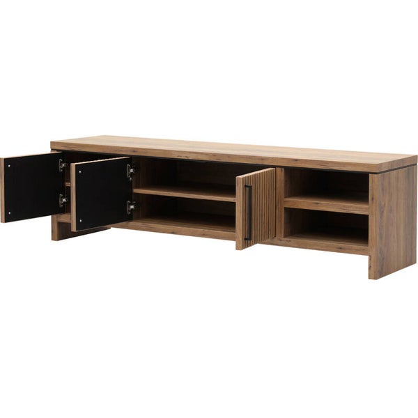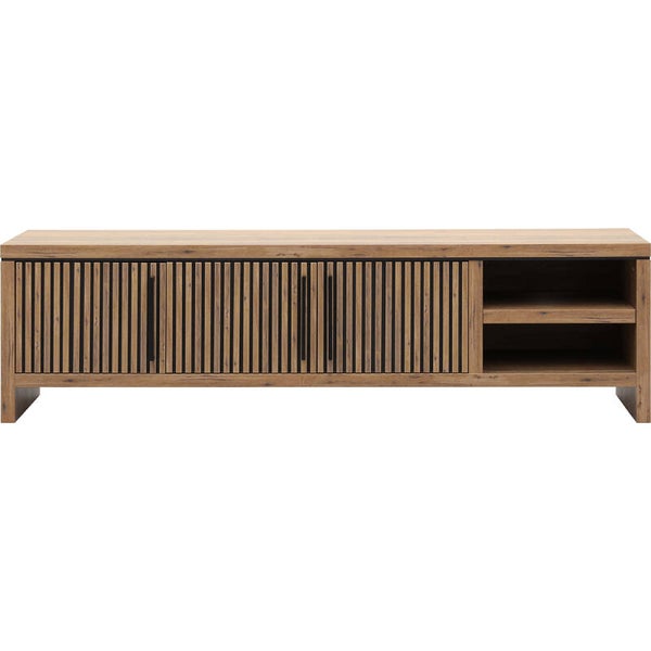 Een van de huidige interieurtrends? Latjes! Bij veel mensen zitten ze nu thuis tegen de wand, maar wil jij het anders? In het geval van Madrid vind je de latjes in het design van dit tv-meubel. Een super sfeervolle combinatie en het enige dat je hoeft te doen is dit meubel kopen. Dit tv-meubel met 3 deuren en 2 open vakken is gemaakt van melamine: een sterke kunststoflaag die oogt en voelt als massief hout, maar vele malen krasvaster en onderhoudsvriendelijker is. Nog een fijn voordeel van tv-meubel Madrid, is dat de deuren sluiten met een softclose systeem. De kast is 176x50x45 cm groot en heeft de bruine kleur van sheesham, oftewel rozenhout.