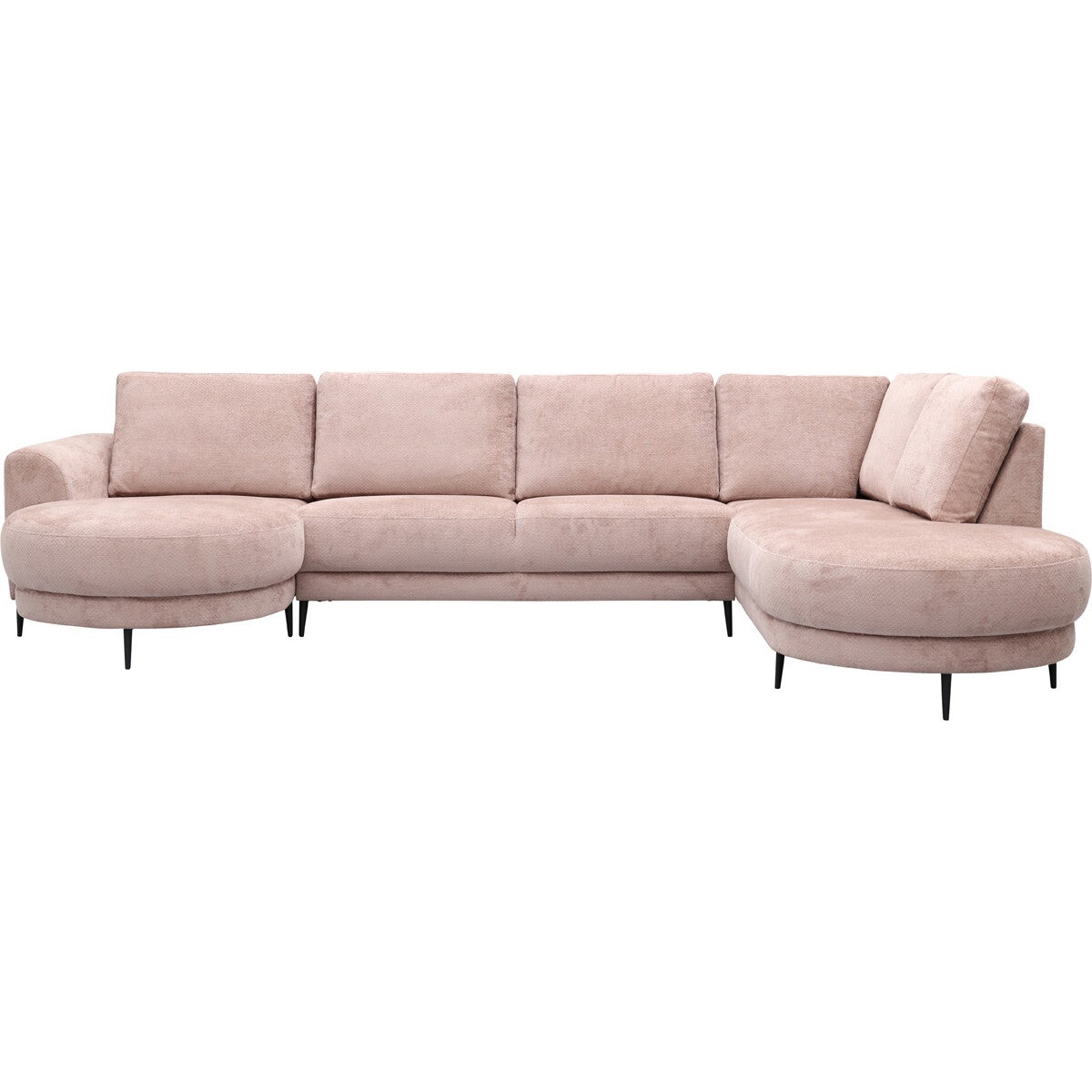 - Uitvoering getoond model Longchair rond links + 2.5 zits links + hoekziteiland rond rechts in stof Movie 160 magnolia