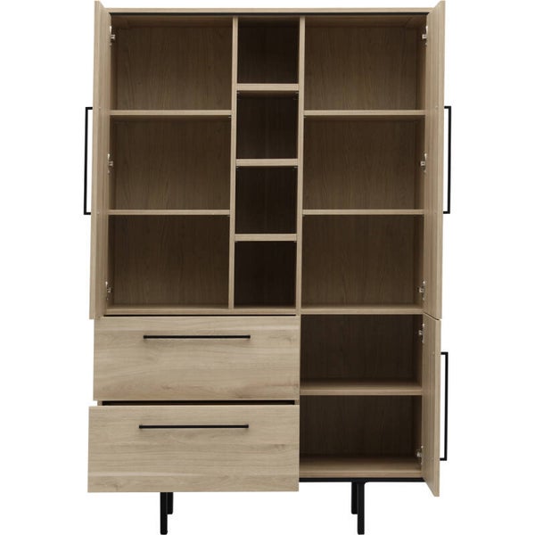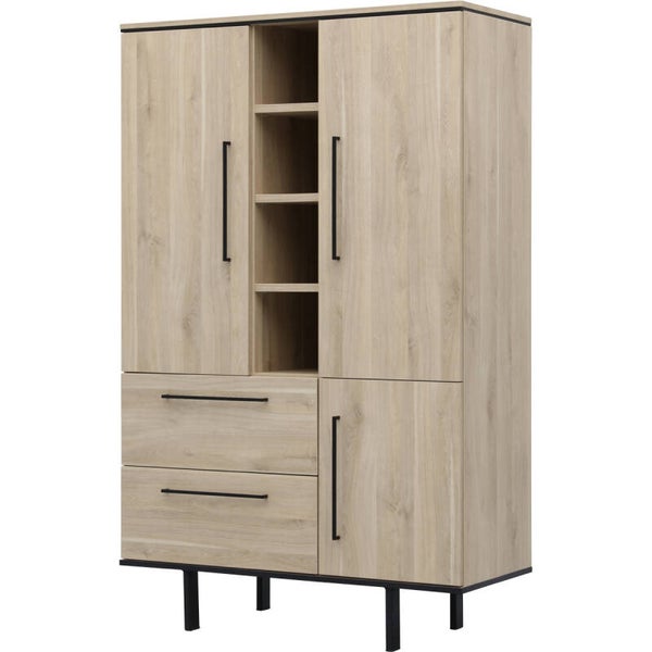 Heb jij thuis een industriële inrichting? Dan past barkast Stilo perfect in jouw interieur! Deze sfeervolle barkast heeft 2 lades, 3 deuren en 4 open vakken. De strakke zwarte designpoot en handgrepen geven barkast Stilo een stoere en sfeervolle uitstraling. De kast heeft een melamine afwerking in de kleur fresh oak. Melamine is een sterk materiaal dat oogt als massief hout. Het is in hoge mate krasbestendig en onderhoudsvriendelijk: je hoeft hem enkel schoon te maken met een vochtige doek. De afmeting van dit dressoir is 221x80x45 cm (bxhxd) en is daarmee een mooie keuze voor bij jou thuis!