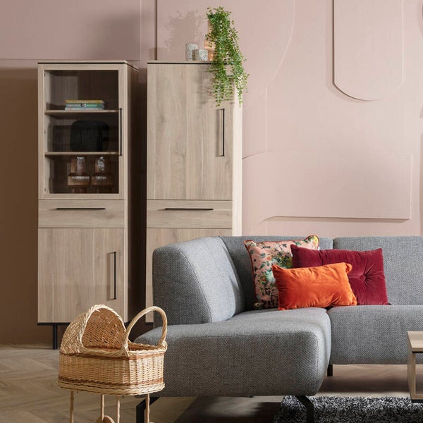 Vitrinekast Stilo heeft een subtiele stoere uitstraling. Perfect als je een smalle, hoge kast zoekt voor jouw moderne interieur! Deze smalle vitrinekast heeft 2 planken in het vitrine gedeelte en biedt opbergruimte door de lade en de ruimte achter de deur. De Stilo kasten zijn gemaakt van melamine in de houtkleur fresh oak. Door dit sterke materiaal oogt vitrinekast Stilo als een massief houten kast, maar heeft voordelen ten opzichte van hout. Melamine is namelijk in hoge mate bestand tegen krassen en is makkelijk schoon te maken met een vochtige doek, dus onderhoudsvrij! Dit alles geeft de smalle vitrinekast een eigen stijl en past perfect in een industrieel interieur. De houtkleur fresh oak is goed te combineren met andere houtsoorten. Goed om te weten is dat deze kast 60x200x45 cm groot is.