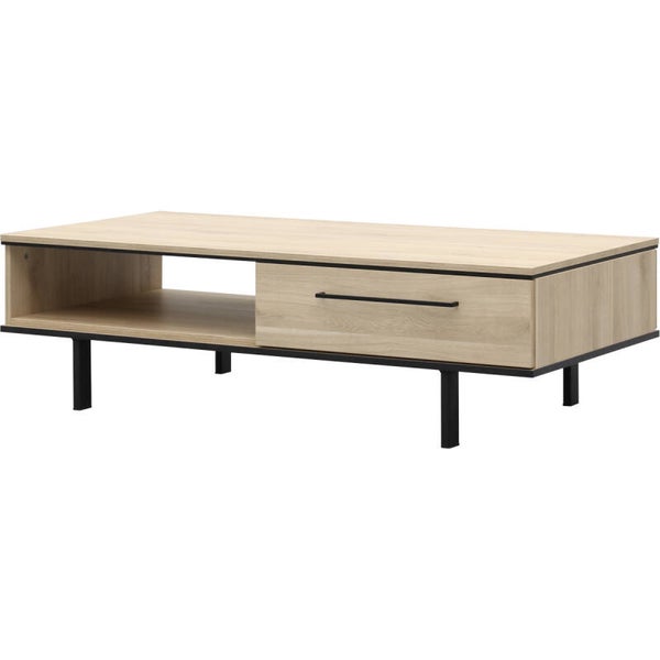 Salontafel Stilo heeft een stoere uitstraling die mooi past in een industrieel, modern of landelijk interieur. Een fijne tafel met praktische ruimte door de lade en het open vak onder het tafelblad en plek voor een mooie vaas of kaarsen. De tafel heeft de kleur fresh oak en is gemaakt van het sterke materiaal melamine. Door dit sterke materiaal oogt salontafel Stilo als een massief meubel. Melamine is in hoge mate bestand tegen krassen en makkelijk schoon te maken met een vochtige doek, dus onderhoudsvrij! Dit alles geeft salontafel Stilo een eigen stijl en past perfect in een industrieel interieur. Zoek je meer meubels in de stijl van Stilo, bekijk dan het bijpassende dressoir, tv-meubel of vitrinekast.