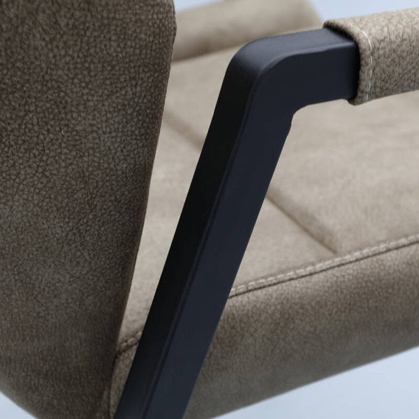 Ben je op zoek naar een industrie eetkamerstoel die zowel praktisch als super stijlvol is? Stop dan met zoeken, want dan heb je hem in stoel Allure gevonden! Allure is namelijk een eetkamerstoel met wieltjes en een armleuning en is gestoffeerd met een trendy microvezelstof in stoer taupe. Praktisch stijlvol dus! Deze stoere stoel heeft veel krachtige elementen zoals de rechte belijning, de stiksels in de leuning en de zitting en het donkere metalen frame en de handgreep.
