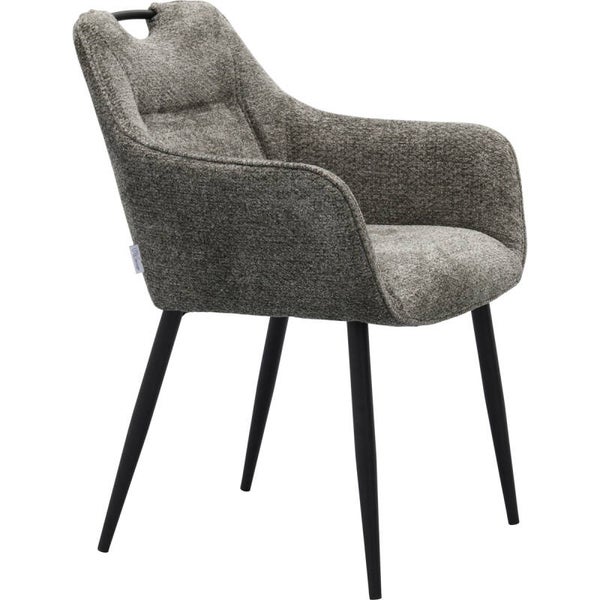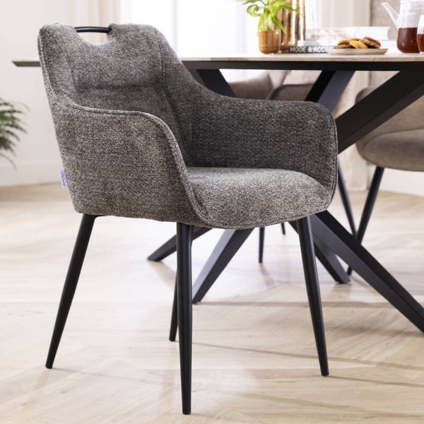 Wie van een comfortabele en moderne eetkamerstoel houdt, zit goed met stoel Annabel. Eetkamerstoel Annabel heeft namelijk praktische armleuningen en een hele handige handgreep! Deze stoel in een antraciettint is 59x86,5x62 cm en is er ook nog in de tinten naturel en taupe.