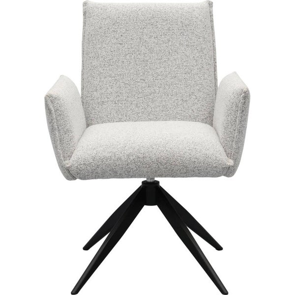 Gwen combineert comfort en design in één stoel. De zachte stof in Pearl of Stone voelt prettig aan, het matzwarte onderstel geeft een stoere twist. En met de draaibare zitting is aanschuiven zó gebeurd. De foam vulling zorgt voor een fijne zit, perfect voor lange avonden.