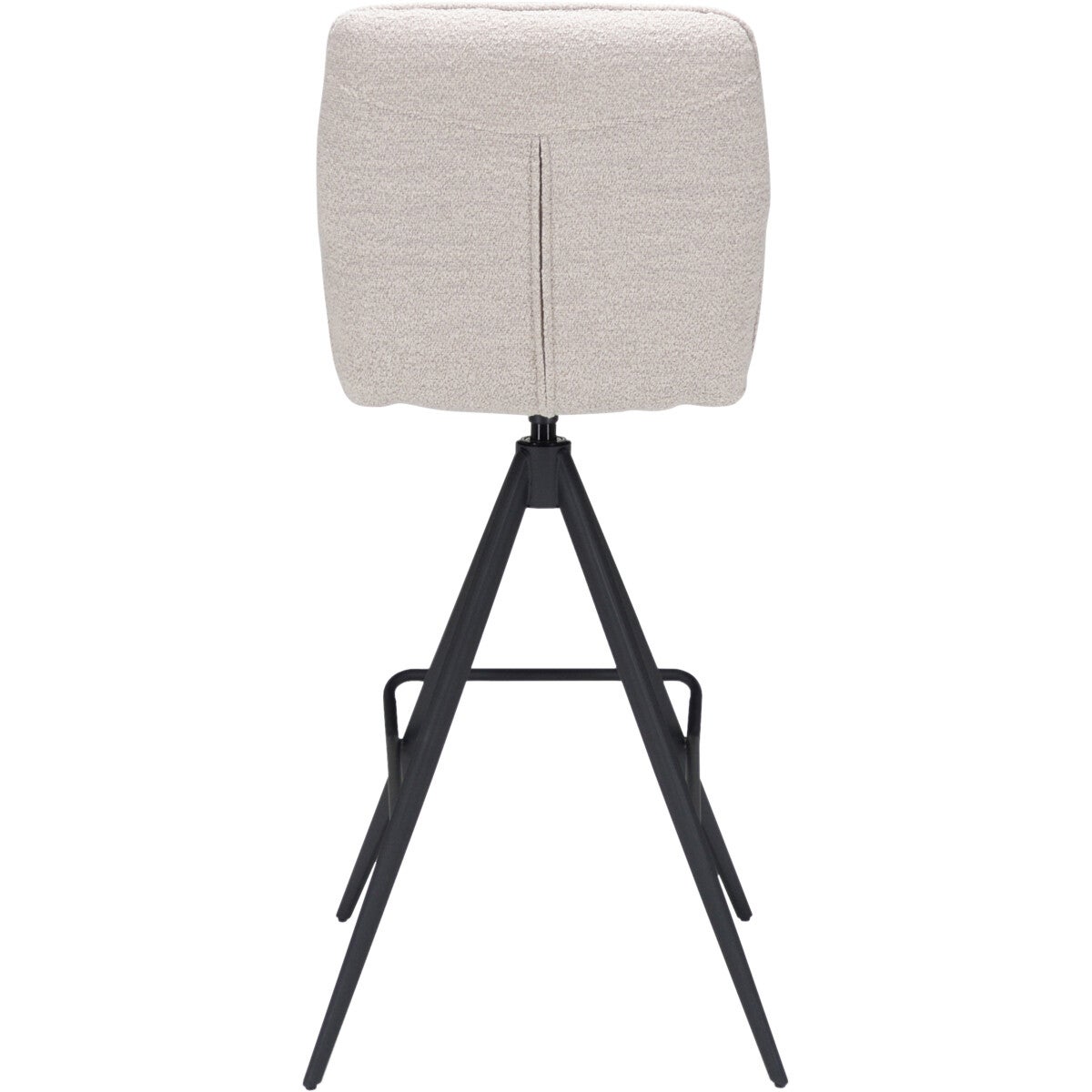 Barstoel Bowie combineert comfort met een strak design. Verkrijgbaar met of zonder armleuning en in twee hoogtes: 65 en 80 centimeter. De zitting draait 360 graden en keert automatisch terug dankzij het handige terugdraaisysteem. Bekleed met zachte stof in de kleuren brown of naturel en afgewerkt met zwarte metalen poten. De vulling van SG28 schuim zorgt voor een stevige, prettige zit. Met armleuning meet Bowie 53 bij 97 bij 45 centimeter, zonder arm is dat 43 bij 97 bij 45 centimeter.